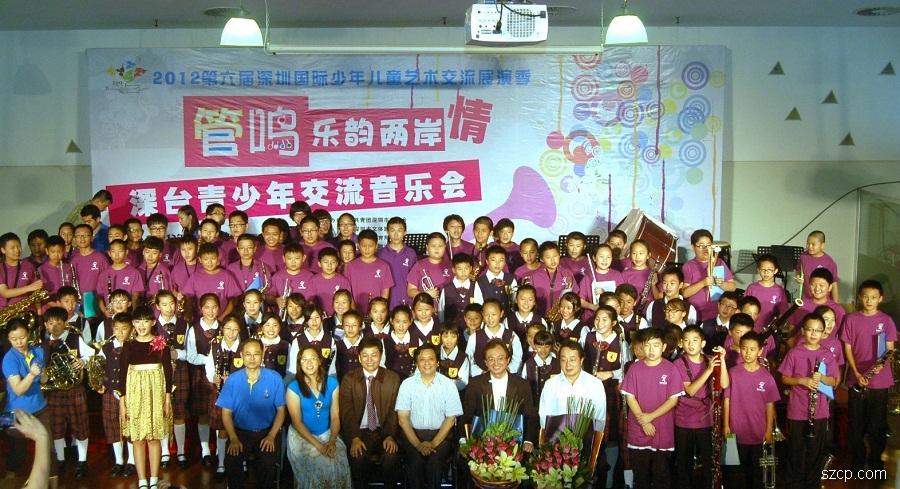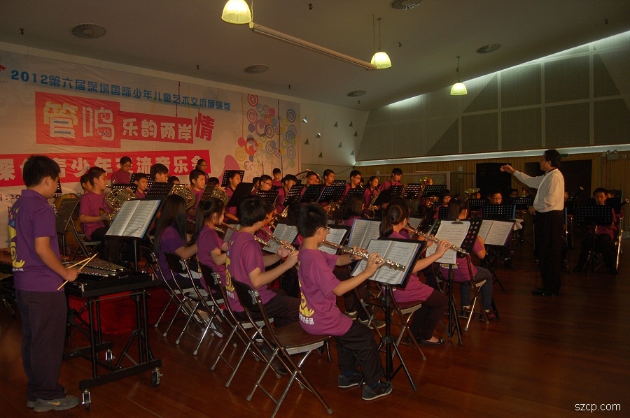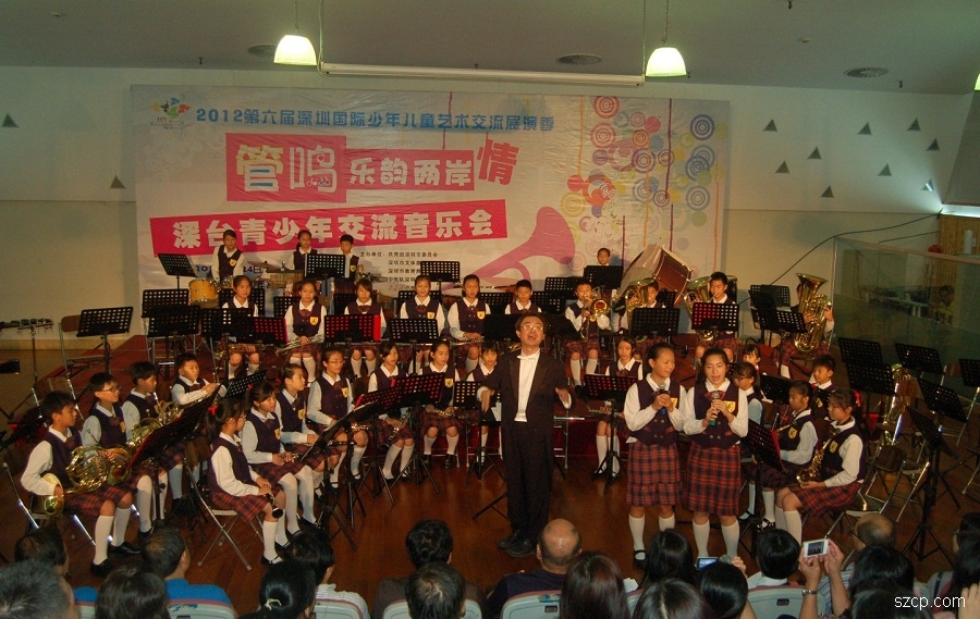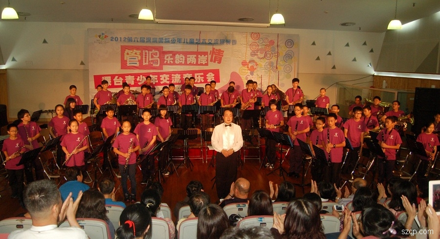 作为2012第六届深圳国际少年儿童艺术交流展演季的重头戏,由深圳市少年宫管乐团和台湾文华小学管乐团联合演出的深台青少年管乐交流音乐会“管鸣乐韵两岸情”于2012624下午4时在深圳市少年宫音乐厅奏响。在近两个小时的演出中,两个乐团近百名小乐手在深圳市少年宫管乐团指挥伏虎老师和台湾文华小学管乐团指挥陈启伟老师的精彩讲解和指挥下共奏了九首风格各异、题材多样的管乐作品,演出赢得了观众一阵阵热烈掌声、获得了圆满成功!